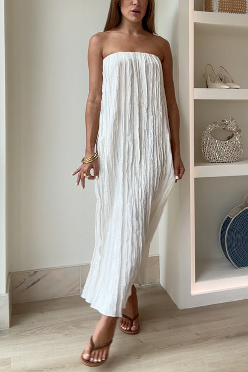 Febedress Exquisite Strapless Pleated Maxi Party Dress