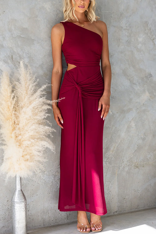 Asymmetric Shoulder Waisted Tie Dye Slit Maxi Dress