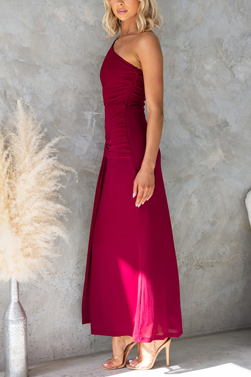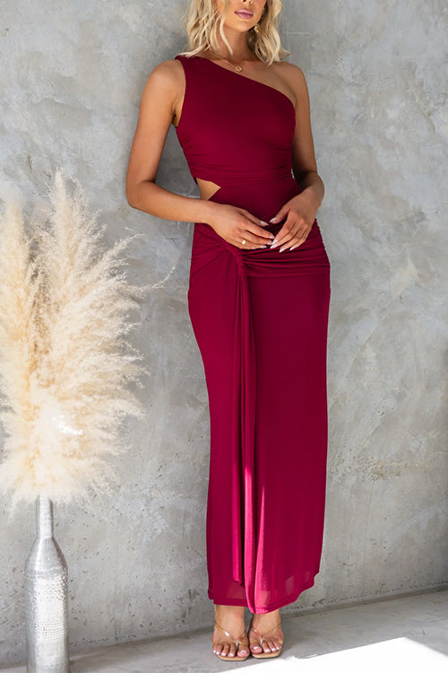 Asymmetric Shoulder Side Slit Floral Maxi Dress