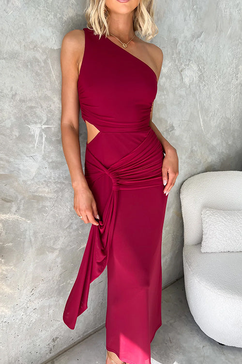 Frill One Shoulder Sleeveless Floral Print Bodycon Maxi Dress