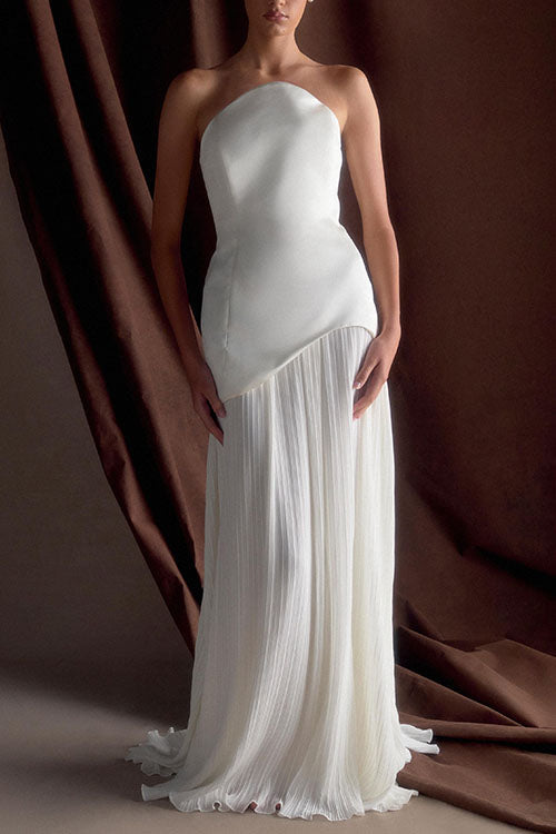 V Neck Cut Out Waist Sleeveless Pleated Maxi Dress
