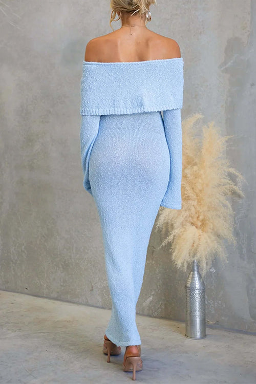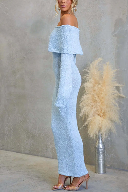 Febedress Off Shoulder Long Sleeves Bodycon Stretchy Maxi Dress