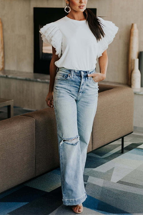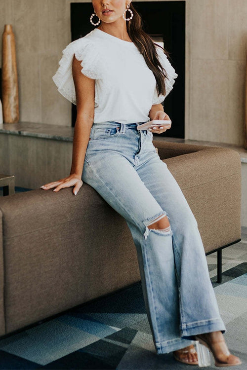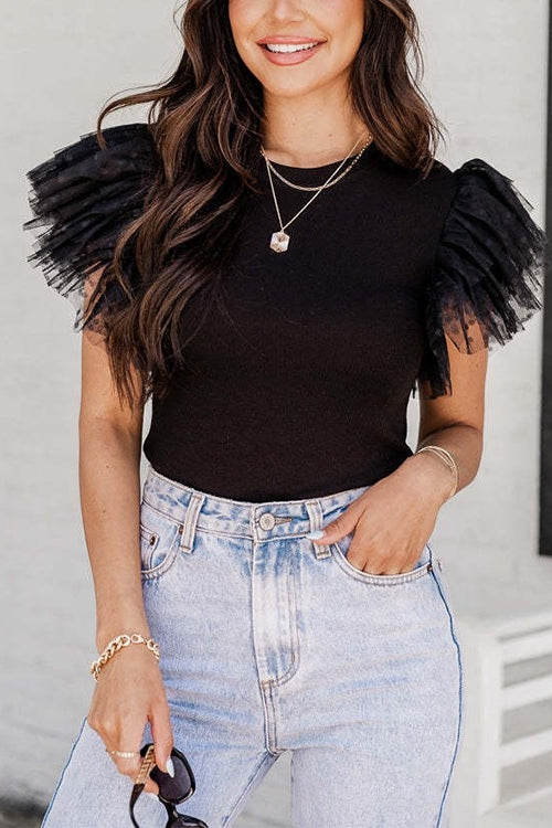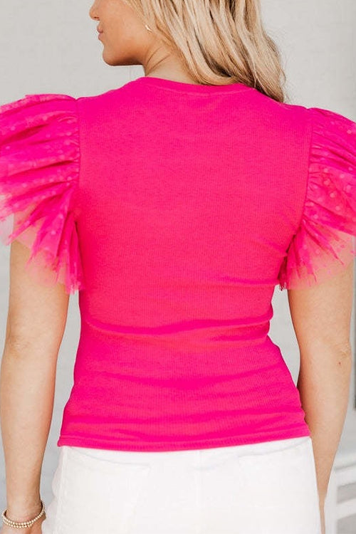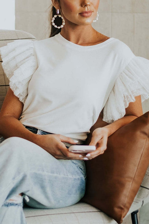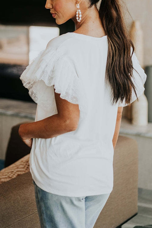 Febedress Round Neck Polka Dot Ruffle Short Sleeves Top