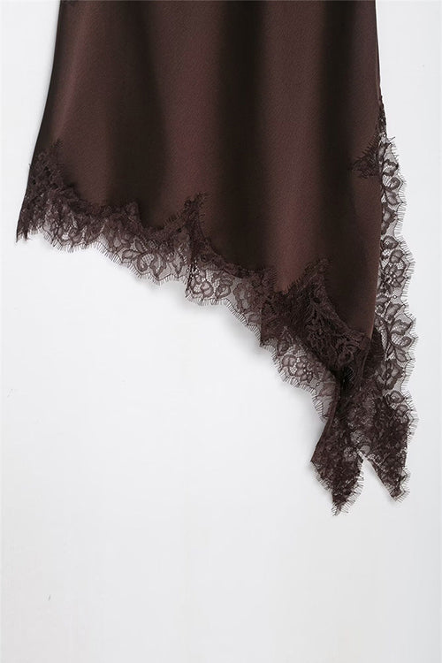 Febedress Spaghetti Strap Lace V Neck Irregular Hem Mini Dress