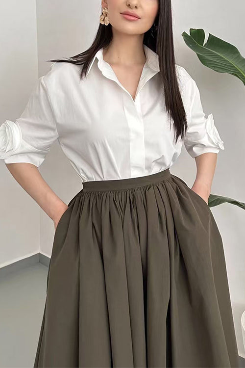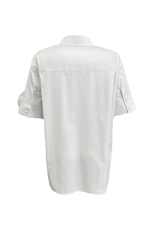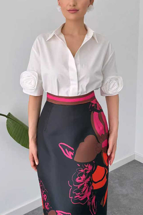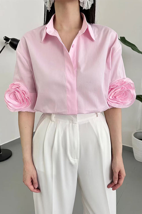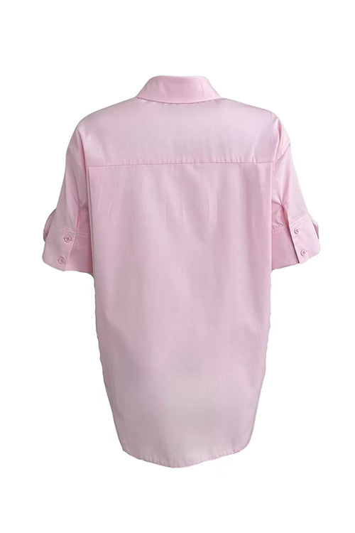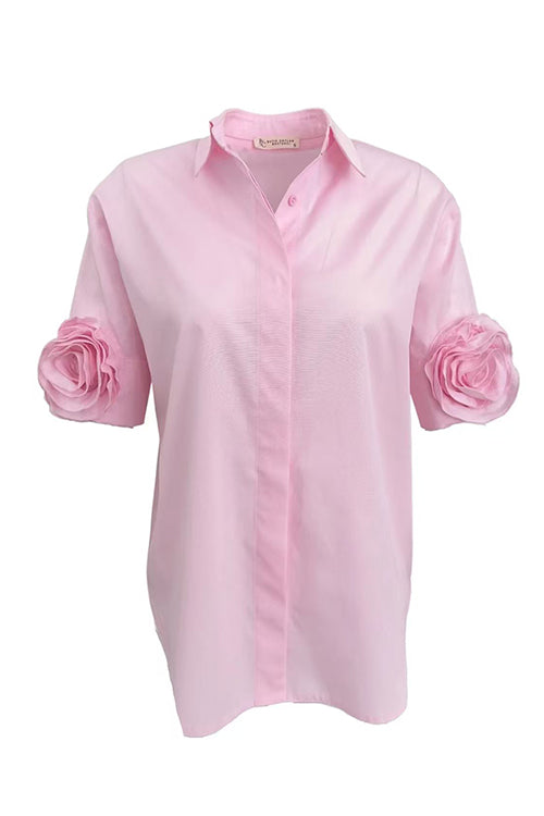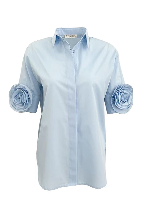 Collared Short Sleeves Button Down Flower Detail Shirt