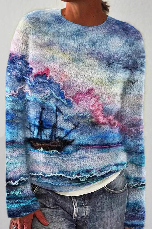 Febedress Vintage Crewneck Unique Print Cozy Sweater(in 3 Patterns)