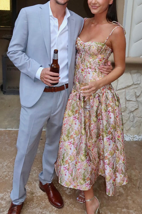 Tie Shoulder Drop Waist Jacquard Midi Cami Dress – Febedress