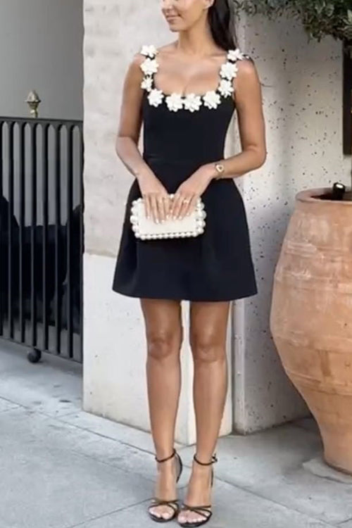 Febedress Strappy Floral Neckline Sleeveless Mini Dress