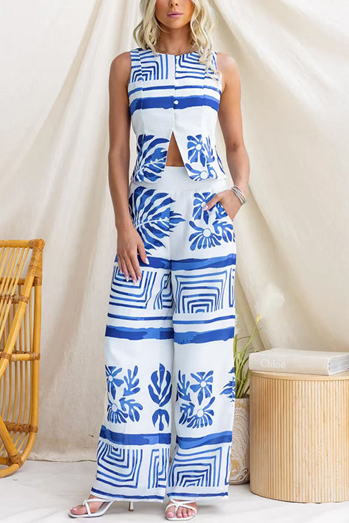 Crewneck Sleeveless Button Up Printed Top – Febedress